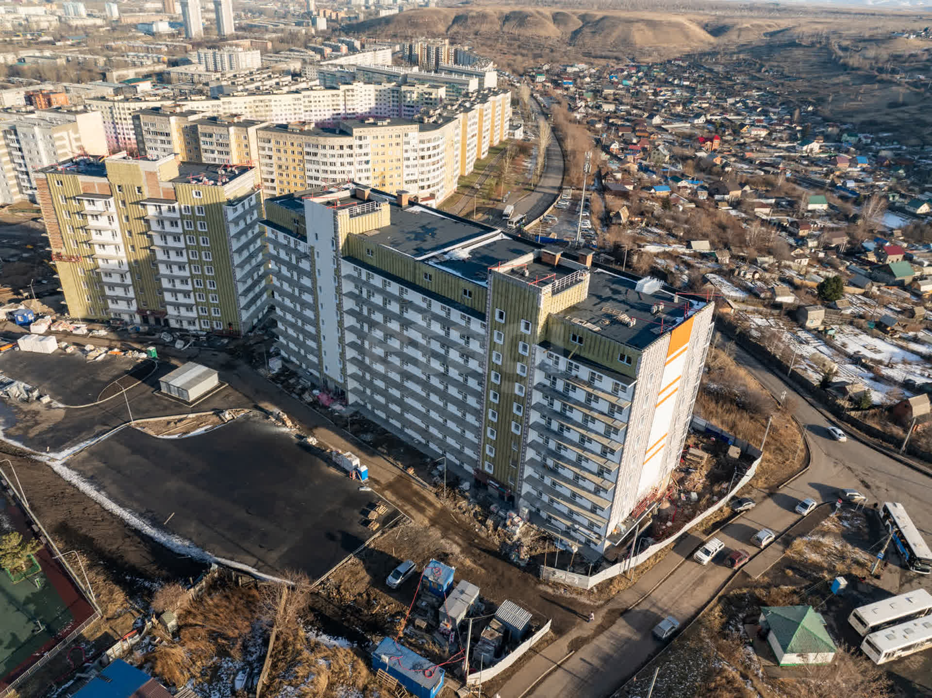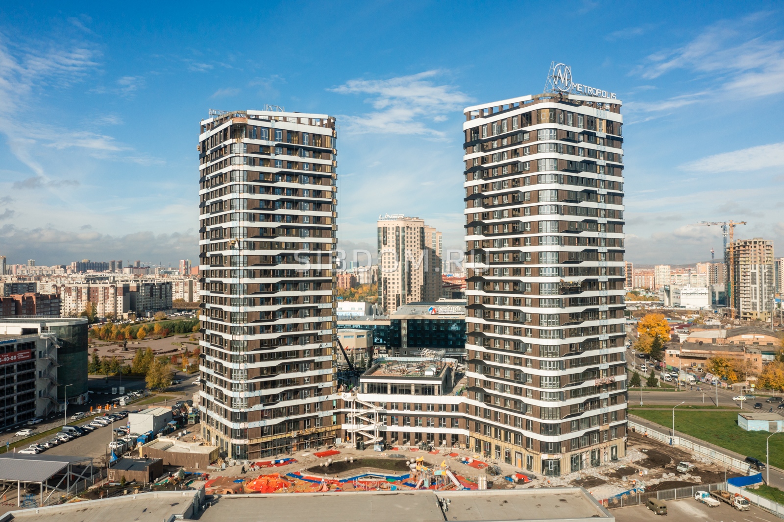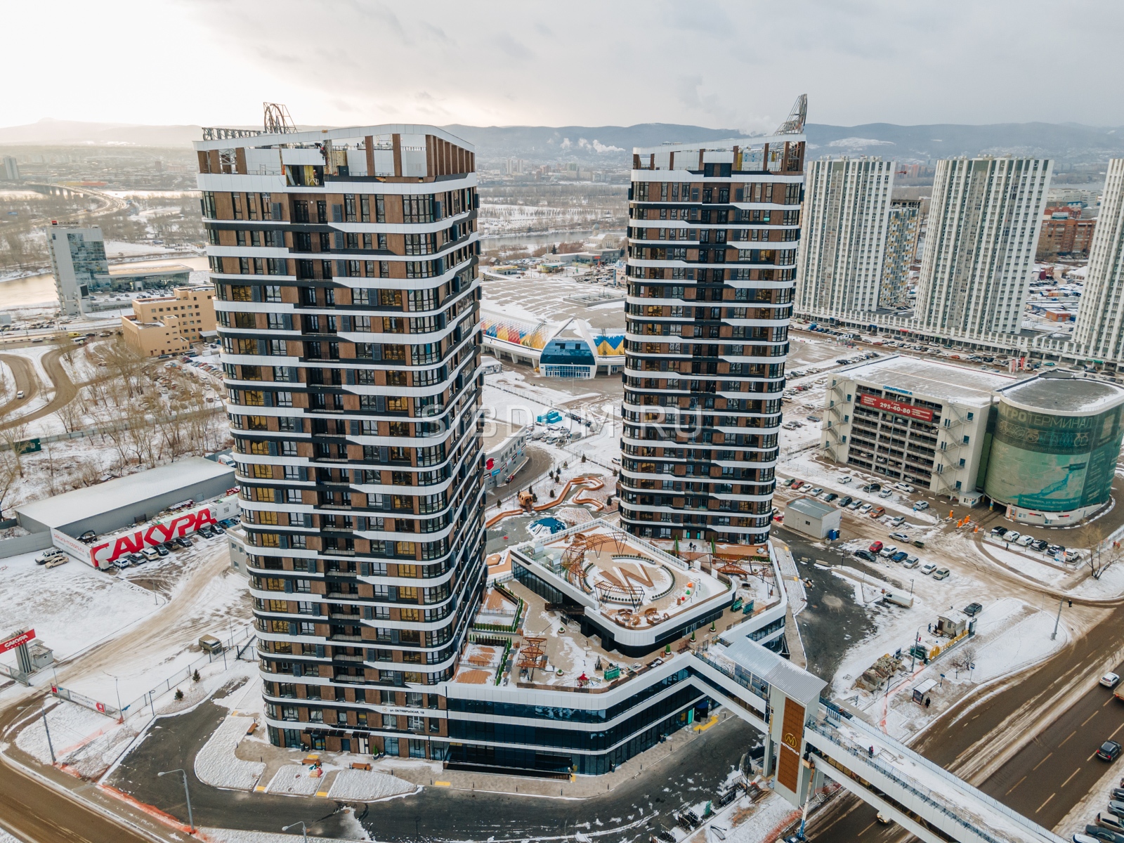 ЖК «Биография» — это три 18-этажных дома из чистого кирпича, так называемые «дома ручной работы». Из окон будущих жителей откроются виды на Енисей, склоны Левого берега и Октябрьский мост.