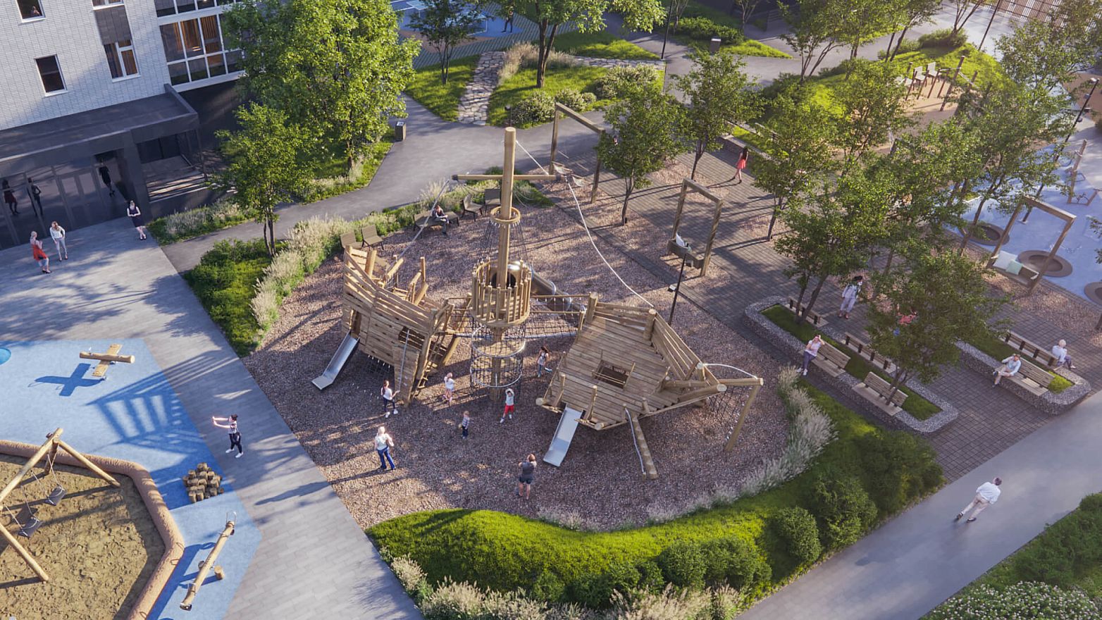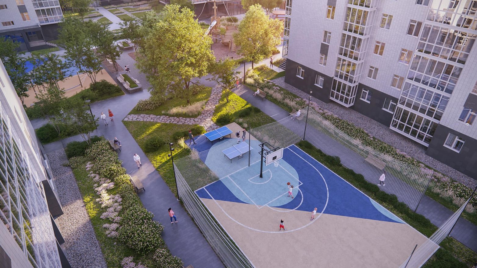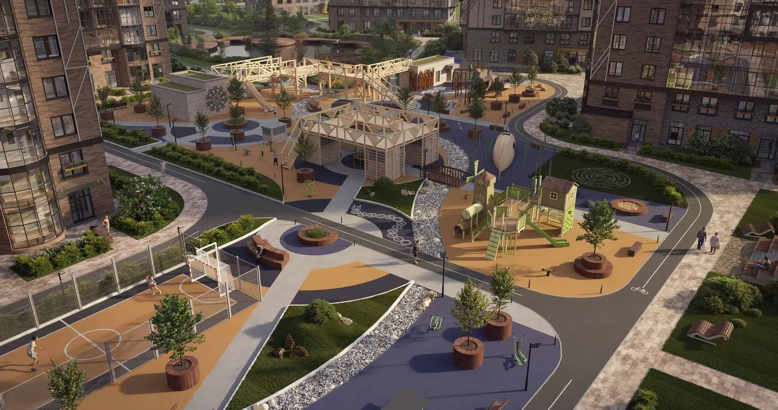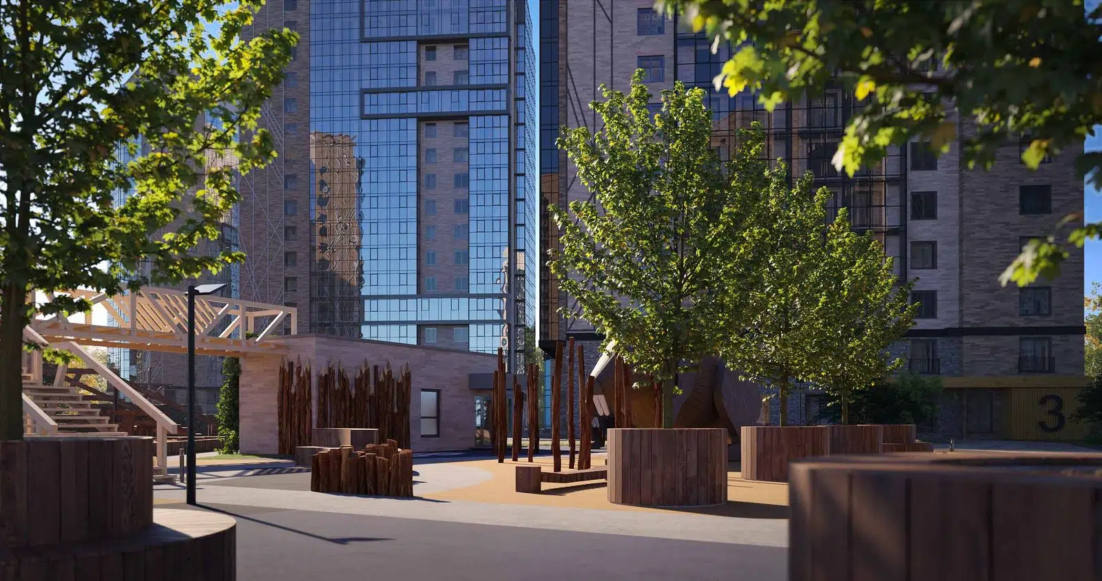 Двор в «Сурикове» — это место для отдыха всех жителей. На территории сделают воркаут-зону, места отдыха для взрослых и игровые площадки для детей.