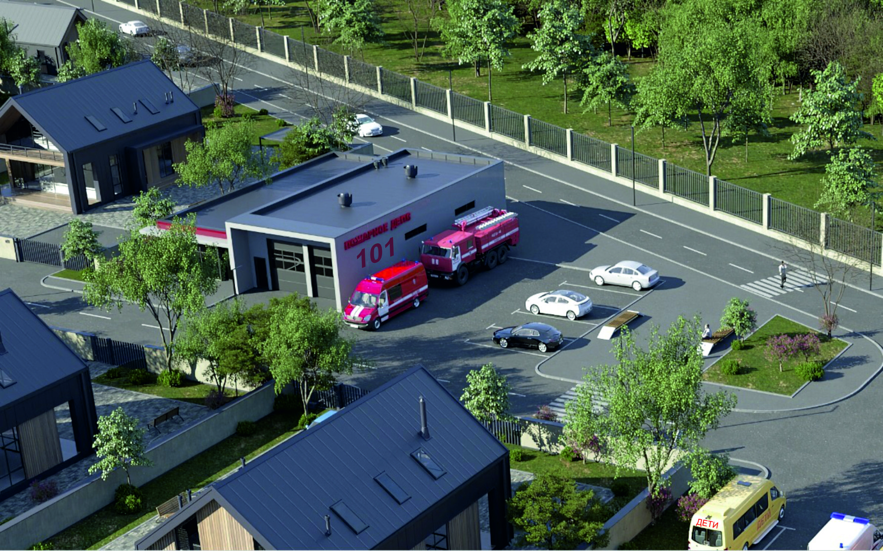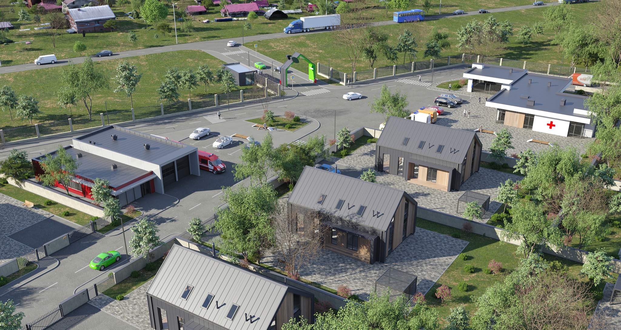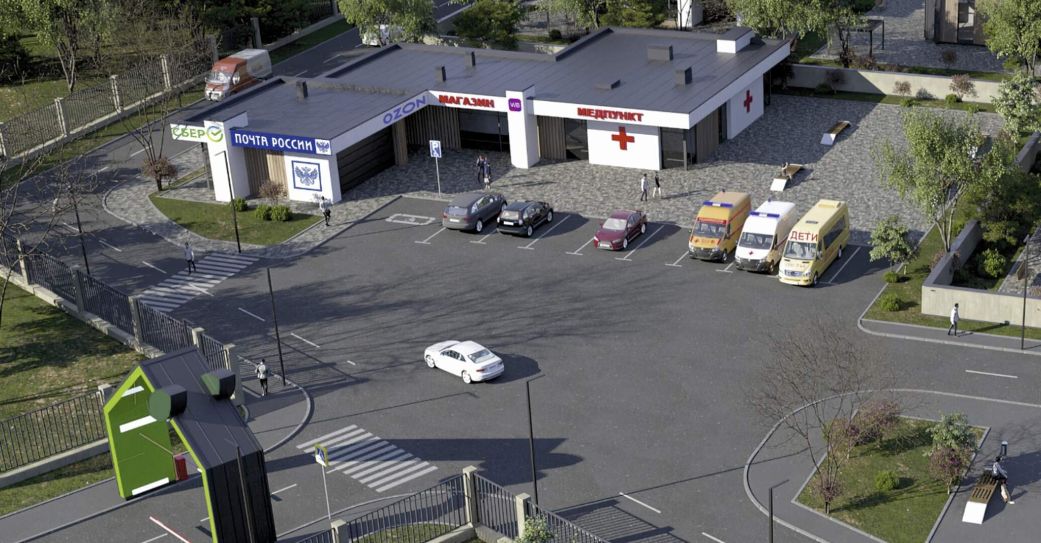 В поселке развитая инфраструктура: минимаркет, автосервис, шлагбаум, площадка для ТБО.