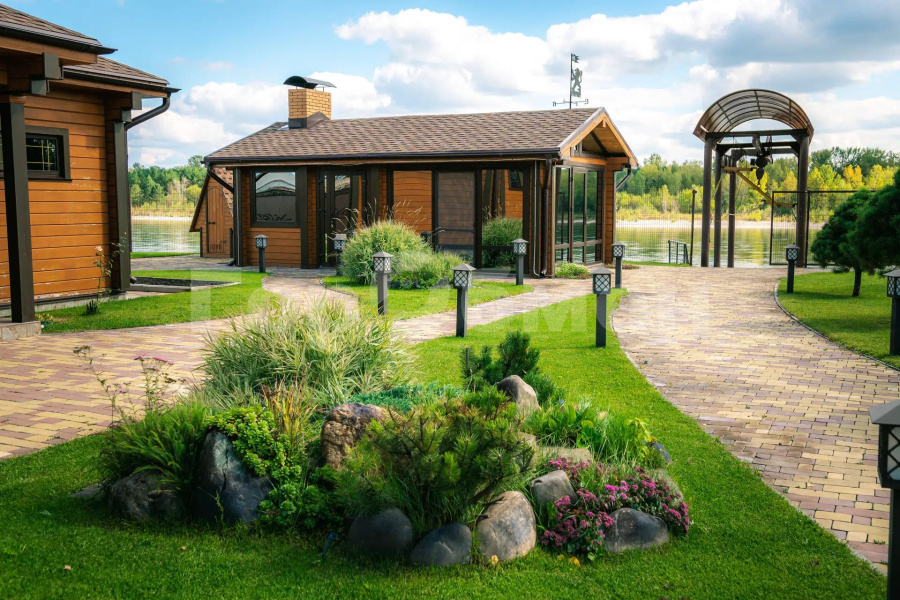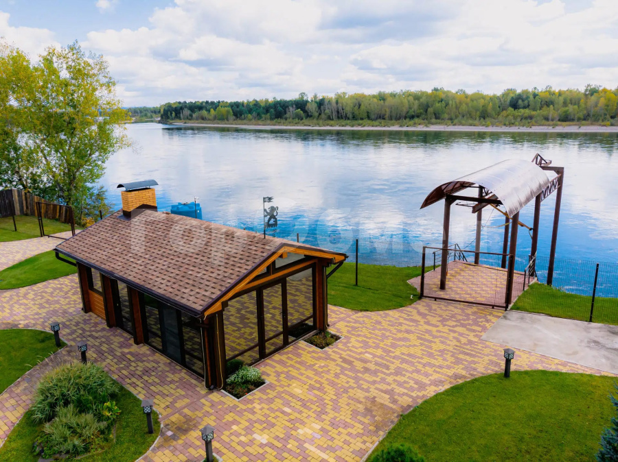 ⦁ Беседка с видом на реку, панорамными окнами, кондиционером, мангальной зоной, дровяной печью, газовой плитой, водоснабжением и обеденной зоной (стол и стулья из массива кедра).