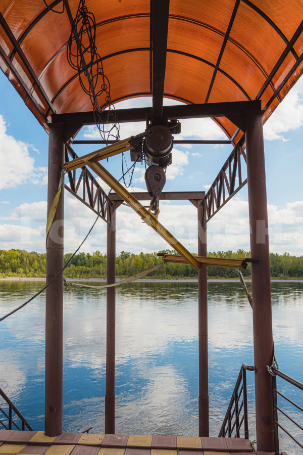 Собственный выход к реке Туба с оборудованной пристанью (для катера и другой водной техники), съездом для снегохода и смотровой площадкой (лестница с перилами, навес, электричество).